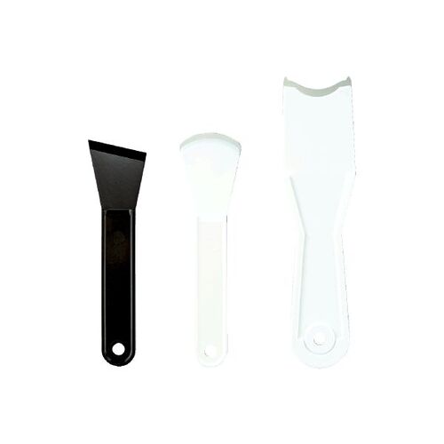 ■カーボンスクレーパー:4×0.7×長15cm ステンレスはがしヘラ:4×0.7×長15.5cm 溝汚れ落としヘラ:5×0.7×長19.5cm