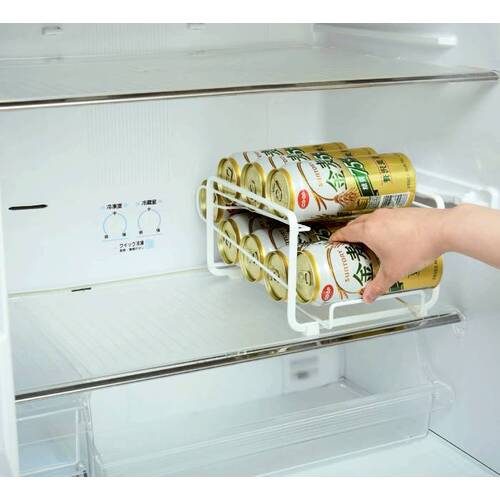 冷蔵庫の中で散らかりがちな500mLの缶がすっきり 上から入れて冷たいものから取り出せます