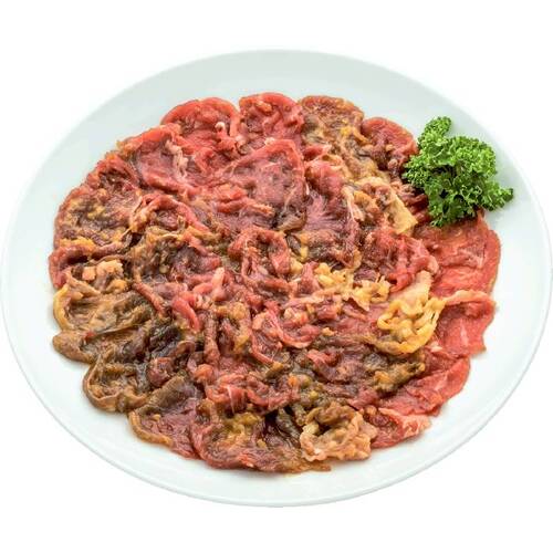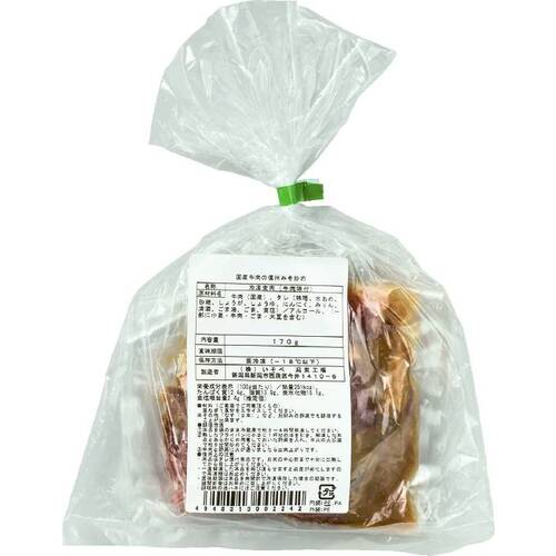• 牛肉(国産)を厚さ約1.2mmにスライスし、信州味噌をベースに黄金生姜を加えた特製の味噌だれで味付けしました。玉ねぎ1玉やなす2本を用意するだけ。解凍後、フライパンで調理してお召しあがりください。