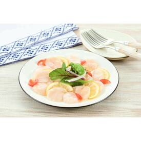 • 甘えび(カナダ産)を使用。水揚げ後、すぐに漁船内にて凍結した甘えびを、タイでむき身処理をしました。MSC認証商品。