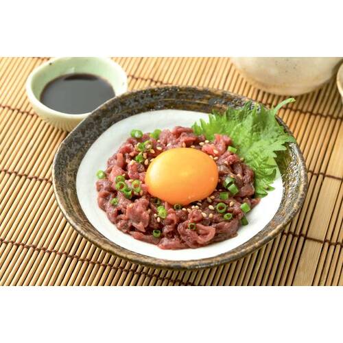 • 馬肉(ウルグアイ産又は、カナダ産)を使用。細切りの馬肉と、馬刺しの醤油タレのセットです。冷蔵庫または流水で解凍後、タレと和えてお召しあがりください。お好みでごま油を加えるのもおすすめです。