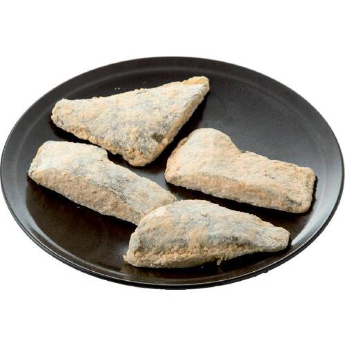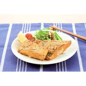 • 骨取りした黄金カレイ(アメリカ産)の切身に、塩味のから揚げ粉を付けました。