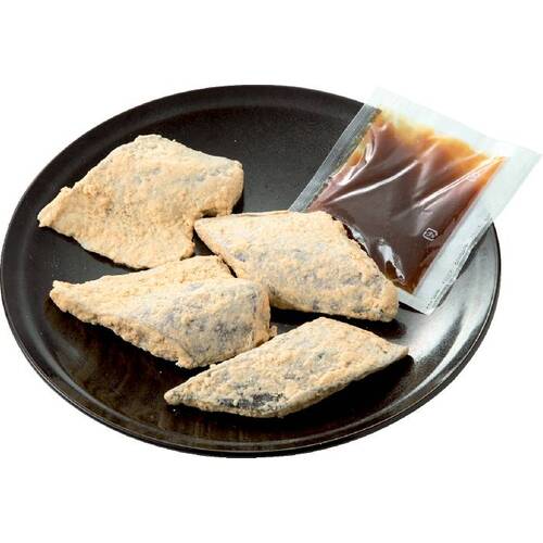 • ふっくらした身が特徴のスケソウダラ(アメリカ産又はロシア産)を切身にして骨を取り、塩味のから揚げ粉を付けました。添付の国産大根おろしソースをかけてどうぞ。