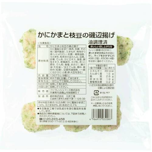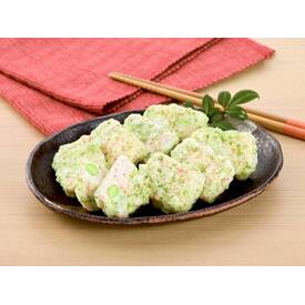 • いとよりだいのすり身を使用。かにかまとあおさの風味がよくあいます。えだまめ、たまねぎ入り。おつまみやおかずにどうぞ。