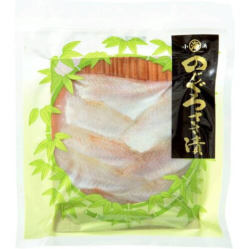 • 国産のアカムツ(のどぐろ)を米酢と塩で調味しました。杉板に乗せてパックしており、杉の香りも楽しめます。