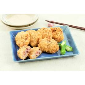 • 北海道産ミズダコ・じゃがいも、たらすり身、たまねぎ等を使用したフライ種です。凍ったまま揚げるだけ。