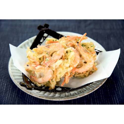 国産芝えび、3種の国産野菜(玉ねぎ・にんじん・小松菜)を使用。じっくりと揚げることで、食材の香ばしさや美味しさを引き出しました。