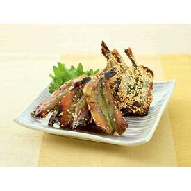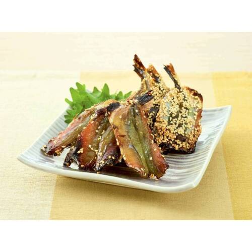 • ひと口サイズのカラフトししゃものオス(アイスランド又はノルウェー又はカナダ産)を、愛知県蟹江町「甘強酒造」の本みりんをブレンドした調味液で漬け込みました。