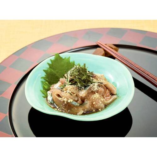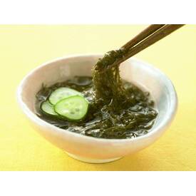 • 独特のぬめりとシャキシャキ食感が特徴の「恩納もずく(沖縄県恩納村産養殖)」を使い、酸味を抑えた三杯酢で味付けしました。