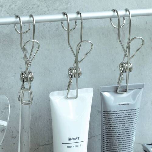 • さびにくいステンレスでできた、バーにひっかけて使えるクリップです。
