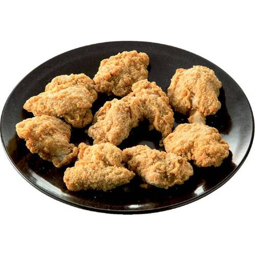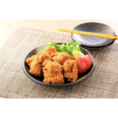 ほどよい脂のりと噛みごたえのある国産若鶏肩肉を使い、しょうゆとおろしにんにく等で味付けした唐揚げです。