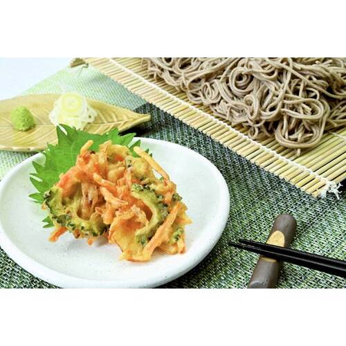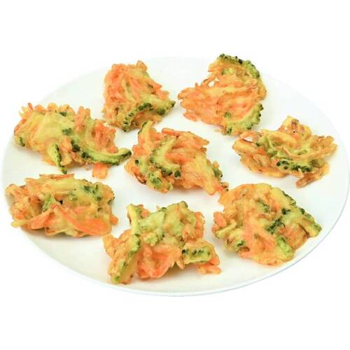 • 国産(ゴーヤ・玉ねぎ・にんじん)を加えた小さめサイズのかき揚げです。味付けはシンプルに藻塩のみにし、ゴーヤのほろ苦い味わいと玉ねぎの甘さを感じられるように仕上げました。電子レンジ(600W)で3個約1分間温めるだけで、簡単にお召しあがりいただけます。