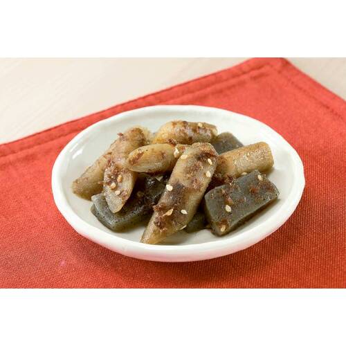 中国産ごぼうを使用。食感の良いごぼうとこんにゃくを、かつお節の旨みをいかした煮物に仕上げました。