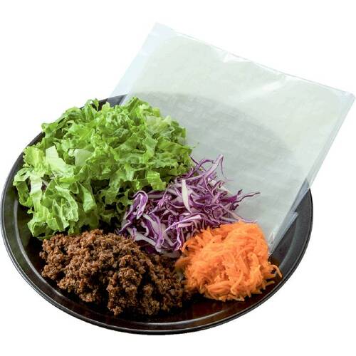 • ライスペーパー、肉味噌、カット野菜(人参、レタス、紫キャベツ)をセットしました。セット内容 ライスペーパー:6枚 肉味噌:186g 野菜:174g(人参ラぺ・レタス・紫キャベツ) 調理時間目安約10分