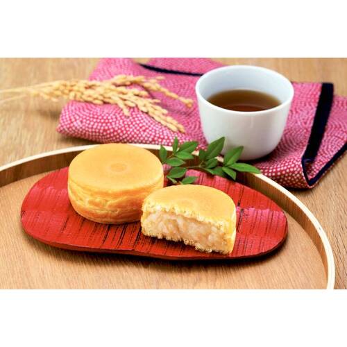 • ふんわり生地に、さっぱりとした甘さの白あんが入った今川焼です。電子レンジ調理のあとにオーブントースターで加熱すると、さらにおいしくお召しあがりいただけます。