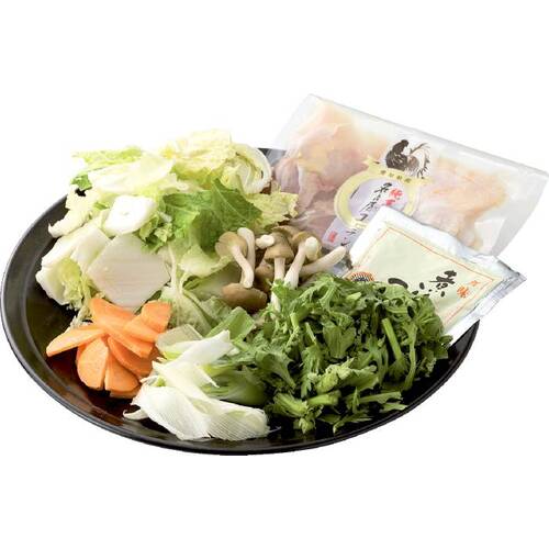 • 名古屋コーチンもも・胸肉、野菜(国産白菜、春菊、長ねぎ、人参)、ぶなしめじ、煮物つゆをセットしました。愛知県で親しまれている「ひきずり鍋」を再現した、肉の旨みが感じられるすき焼きです。セット内容 肉:国産鶏モモ・ムネ肉100g 野菜:210g(白菜・春菊・長ねぎ・人参) ぶなしめじ:30g 煮物つゆ:40ml×2 調理時間目安約10分