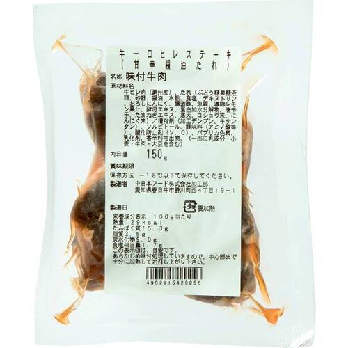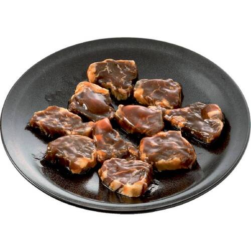 牛ヒレ肉(豪州産)を10mm厚にカットし、醤油ベースに魚醤とレモン果汁、唐辛子をあわせたたれで味付けしました。甘めで食べやすい味わいです。
