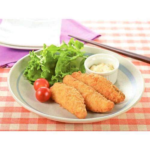 • 秋鮭(北海道沖産)を塩水に漬け込み、鮭本来の旨みを引き出したフライです。しっとりとした食感が特徴です。