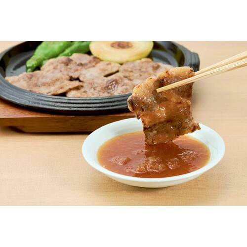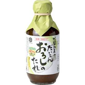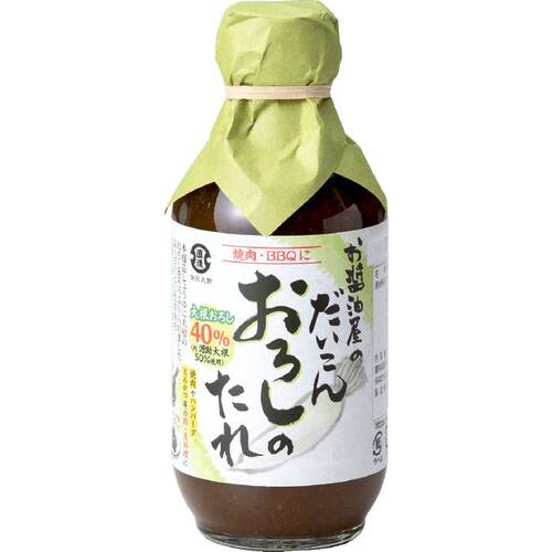 本醸造しょうゆに大根おろしをたっぷり入れた、あっさりとした風味のたれです。焼肉やハンバーグ、とんかつ等の肉料理、魚料理にどうぞ。