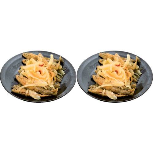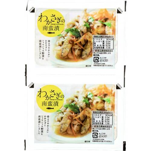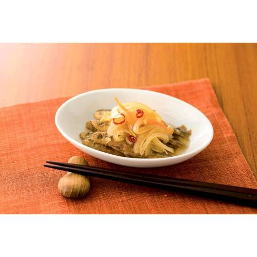 • わかさぎ(ロシア産)を使用し、たまねぎ、にんじん、唐がらしと一緒に南蛮酢に漬け込みました。骨までカラッと揚げてあるので、丸ごとお召しあがりいただけます。
