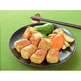 • 魚肉すり身にいかと玉ねぎ等を加えた、しそ(大葉)の風味がやさしく香るちぎり揚げです。