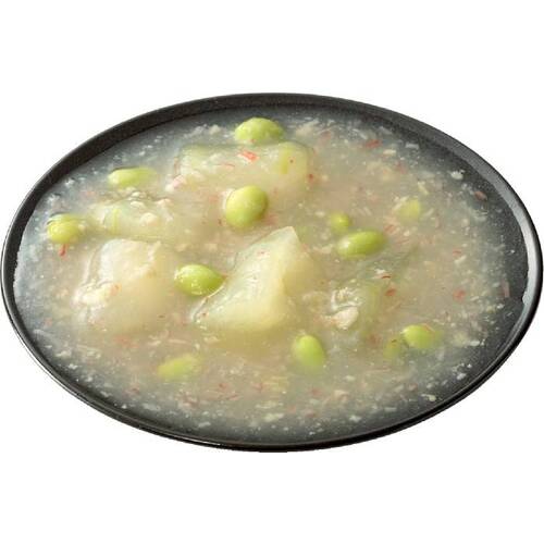 • 中国産とうがんを使用。冬瓜にしょうが風味のさっぱりした鶏そぼろ餡をあわせました。枝豆、かにかま入りで彩りも鮮やかです。