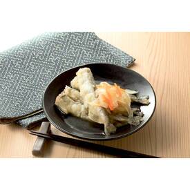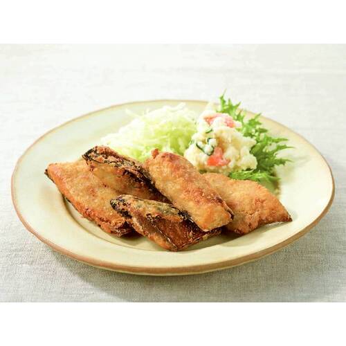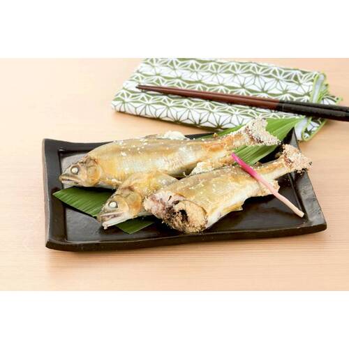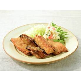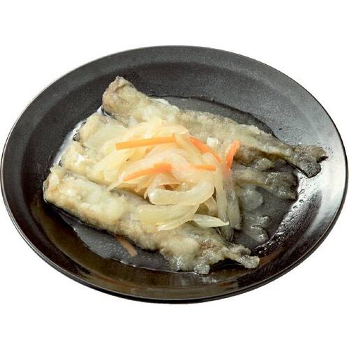からふとししゃも(アイスランド産)のオスをタイで塩水に漬けて干してから、国内の工場で油調し、野菜(たまねぎ、にんじん)とあわせて南蛮漬けにしました。
