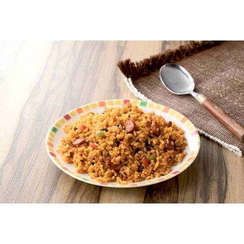 国産米を使用。タイム、オレガノ、クミン、赤唐辛子等の香辛料を使った、スパイシーなジャンバラヤです。ソーセージ、玉ねぎ、ピーマン、赤ピーマン入り。生協宅配向け商品。