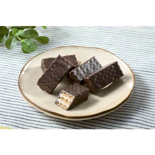 • ひとくちサイズのウエハースにクリームをはさみ、ほんのり甘いチョコレートをかけました。