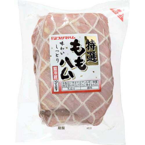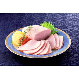 豚もも肉を使用して仕上げたホワイトタイプのももハムです。しっとりとなめらかな食感が楽しめます。リン酸塩・発色剤使用。