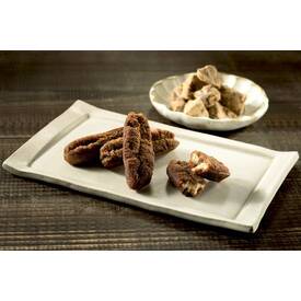 国産小麦、沖縄県産黒糖を使用。食べやすいスティック状にカットし、生地の表面に黒糖をからめて染み込ませた、甘くて香ばしいドーナツです。