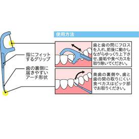 歯と歯の間の歯垢や食べカスを、フロスとピックできれいに除去します。