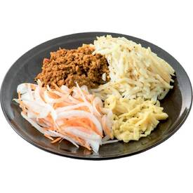 国産じゃがいもを細切りにしたポテトを使用。カレーとチーズの相性が良いおかずです。セット内容 千切りポテト・ドライカレーベース:310g 野菜:60g(玉ねぎ・人参) チーズ:30g 調理時間目安約10分