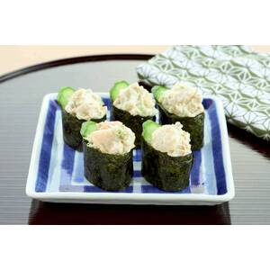 ほたて貝(北海道産)、からふとシシャモの卵(アイスランド産)、ヒトエグサ(国産)をマヨネーズ風ドレッシングで和えました。サンドウィッチや手巻き寿司にもどうぞ。