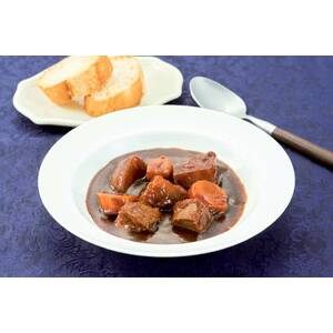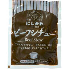 北海道・札幌の円山地区にある洋食店「レストランにしかわ」監修。ビーフブイヨンからつくったデミグラスソースで、濃厚で深みのあるコクと風味が楽しめます。カナダ産牛肉、国産じゃが芋、人参の具入り。