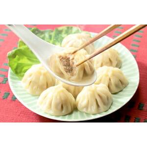 国産(豚肉・豚脂・たまねぎ・しょうが)を使用。具材とスープのバランスをよくするために、皮を薄く仕上げた小籠包です。豚肉のしっかりとした具材感が楽しめます。
