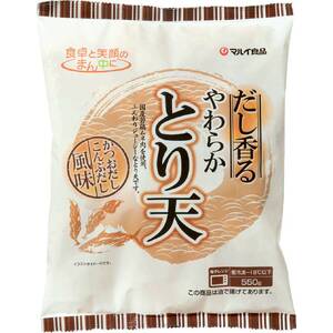 若鶏ムネ肉(国産)を使用。かつおだしと北海道産真こんぶのだしを使用し、だし感を高め、素材の美味しさを引き立てました。肉の下味には超特選こいくちしょうゆ、瀬戸内の藻塩を加え、調味後にじっくり熟成することで、やわらかくコクのあるとり天に仕上げました。
