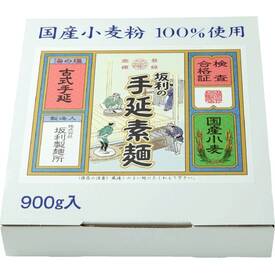 国産小麦粉を使用。国産塩と圧搾の胡麻油で丁寧に手延べしたおそうめんです。しっかりとしたコシとツルツルとした食感を楽しめます。ゆで時間約2分。