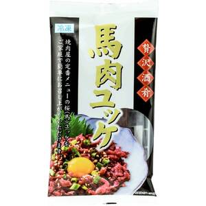 馬肉(ウルグアイ産又は、カナダ産)を使用。細切りの馬肉と、馬刺しの醤油タレのセットです。冷蔵庫または流水で解凍後、タレと和えてお召しあがりください。お好みでごま油を加えるのもおすすめです。