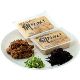 絹厚あげ、ひじき、肉味噌、小ねぎのセットです。肉味噌は、鶏肉と大豆ミートを使用しています。セット内容 絹厚あげ:360g ひじき:40g 小ねぎ:10g 肉味噌:150g 調理時間目安約10分。辛さが苦手な方はご注意ください。