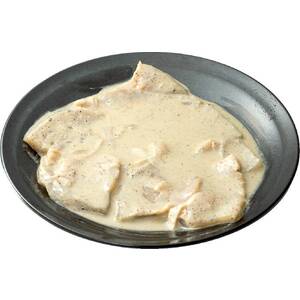 鶏ムネ肉(国産)を食べやすい大きさにカットし、黒胡椒等の香辛料を配合したタレに漬けこみました。しっとりした鶏ムネ肉が、スパイシーな味付けで食欲をそそります。