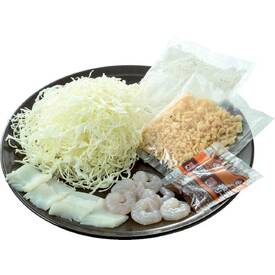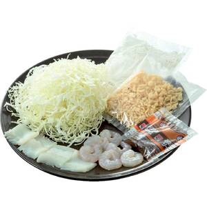 海鮮(イカ・エビ)がたっぷり入った、ふわふわのお好み焼きがつくれます。セット内容 魚介:80g(イカ・エビ) キャベツ:100g お好み焼き粉:100g いか味天かす:20g お好みソース:30g 調理時間目安約20分 ※卵(2個)はご用意ください