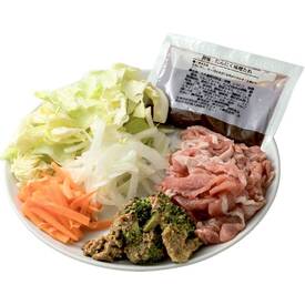 国産豚肉、キャベツ、玉ねぎ、ブロッコリー、人参、ねりごま、にんにく味噌たれのセットです。セット内容 肉:国産豚小間肉100g 野菜:130g(キャベツ・玉ねぎ・ブロッコリー・人参) ねりごま:15g にんにく味噌たれ:1袋 調理時間目安約10分 ※片栗粉はご用意ください