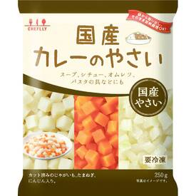 カット済みの国産じゃがいも・たまねぎ・にんじんをミックスしました。必要分量を取り出し冷凍のまま加熱調理ができます。カレーはもちろん、スープやシチュー、オムレツ、パスタの具等にもどうぞ。