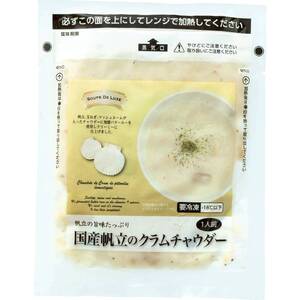 国産帆立、国産玉ねぎ、マッシュルームを使用。帆立の旨みたっぷりのクラムチャウダーです。