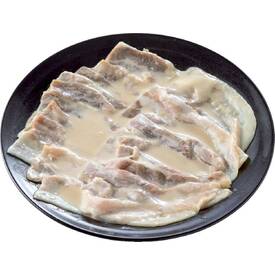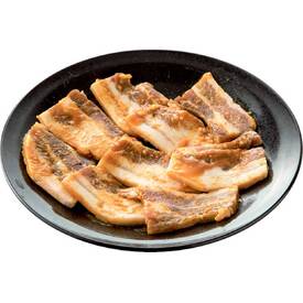 豚バラ肉(国産)を約6mmの厚さにカットし、5種類のにんにくを使用した濃厚なみそダレに漬けこみました。解凍後、フライパンでこんがりと焼いてお召しあがりください。