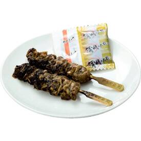 うなぎ(愛知県産養殖)の肝を串焼きに仕上げました。たれ・さんしょう付き。