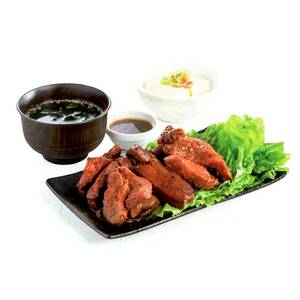 カットした豚ばら肉に、にんにくのきいた甘辛いしょう油たれを加え、真空調理で旨みを閉じこめました。レンジで温めるだけで、こってり濃厚な味が楽しめます。解凍してそのままでもお召しあがりいただけます。東京新大久保の韓国料理店「でりかおんどる」監修。