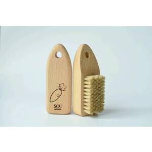 2種類の毛で凹凸面の汚れを落とします。持ち手はヒノキ製。