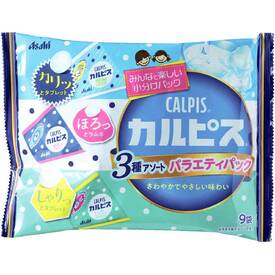 タブレット2種とラムネ1種の3種詰合せです。3つの食感(カリッと・ほろっと・しゃりっと)のカルピスを味わえます。小袋入り。